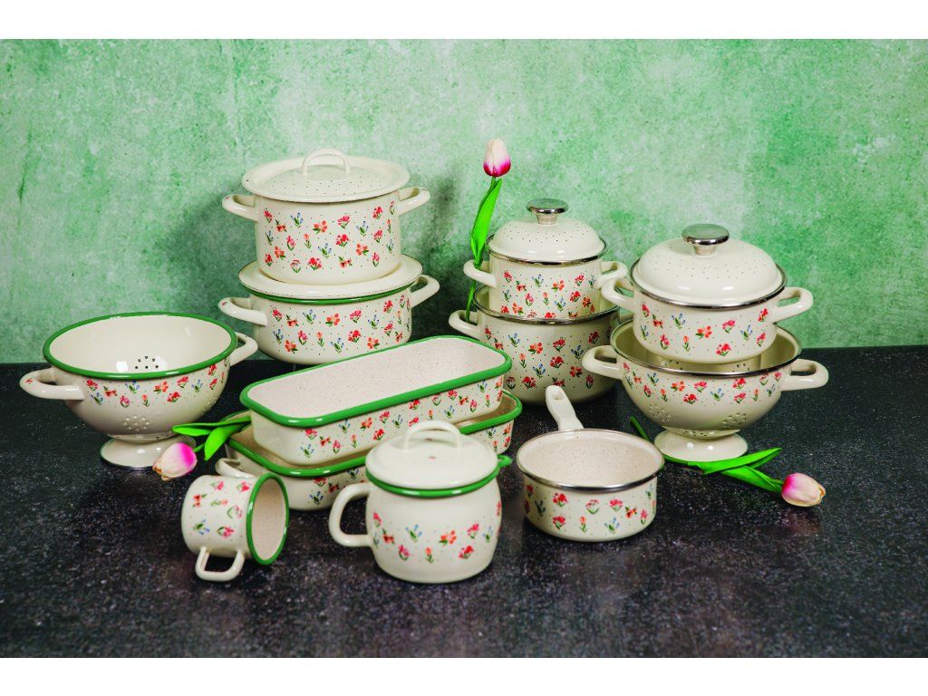 Řada kvalitního smaltovaného nádobí s retro designem Julie bude ozdobou každé kuchyně ať už v klasické domácnosti nebo na chatě či chalupě. Toto nádobí je určeno pro milovníky tradičních dekorací v podobě květů v kombinaci s elegantním lehce béžovým smaltem. Řada nádobí Julie je nabízena v široké škále položek od smaltovaných hrnků, přes smaltované pekáče až například po smaltované hrnky.