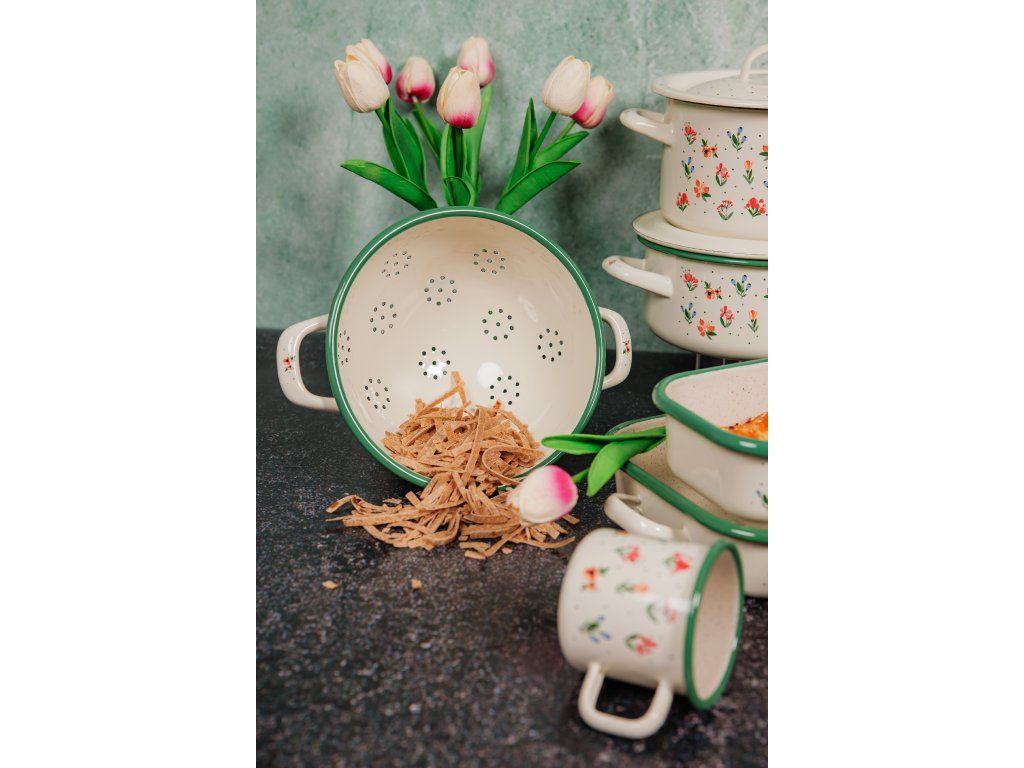 Řada kvalitního smaltovaného nádobí s retro designem Julie bude ozdobou každé kuchyně ať už v klasické domácnosti nebo na chatě či chalupě. Toto nádobí je určeno pro milovníky tradičních dekorací v podobě květů v kombinaci s elegantním lehce béžovým smaltem. Řada nádobí Julie je nabízena v široké škále položek od smaltovaných hrnků, přes smaltované pekáče až například po smaltované hrnky.