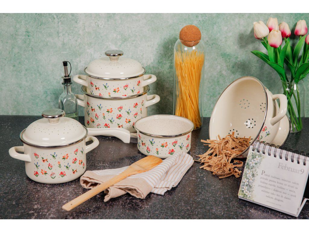 Řada kvalitního smaltovaného nádobí s retro designem Julie bude ozdobou každé kuchyně ať už v klasické domácnosti nebo na chatě či chalupě. Toto nádobí je určeno pro milovníky tradičních dekorací v podobě květů v kombinaci s elegantním lehce béžovým smaltem. Řada nádobí Julie je nabízena v široké škále položek od smaltovaných hrnků, přes smaltované pekáče až například po smaltované hrnky.