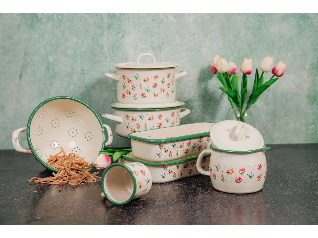 Řada kvalitního smaltovaného nádobí s retro designem Julie bude ozdobou každé kuchyně ať už v klasické domácnosti nebo na chatě či chalupě. Toto nádobí je určeno pro milovníky tradičních dekorací v podobě květů v kombinaci s elegantním lehce béžovým smaltem. Řada nádobí Julie je nabízena v široké škále položek od smaltovaných hrnků, přes smaltované pekáče až například po smaltované hrnky.