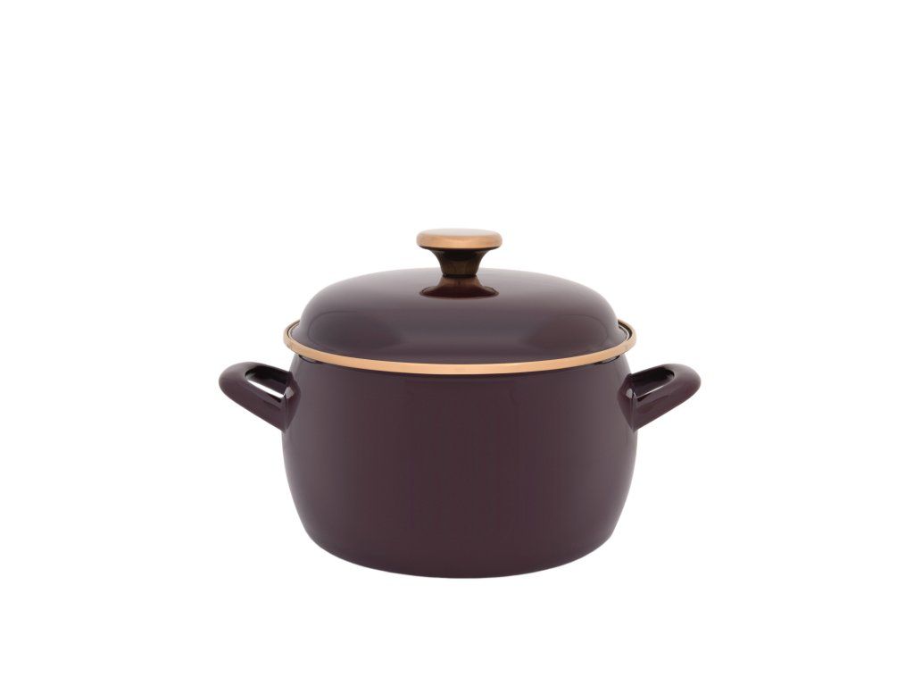 Elegantní smaltované nádobí, ideální pro přípravu jídel pro rodinu či hosty. Intenzivní bordó barva v kombinaci se zlatým zakončením okrajů a rukojeti mu dodává luxusní vzhled, který bude ozdobou každé kuchyně.