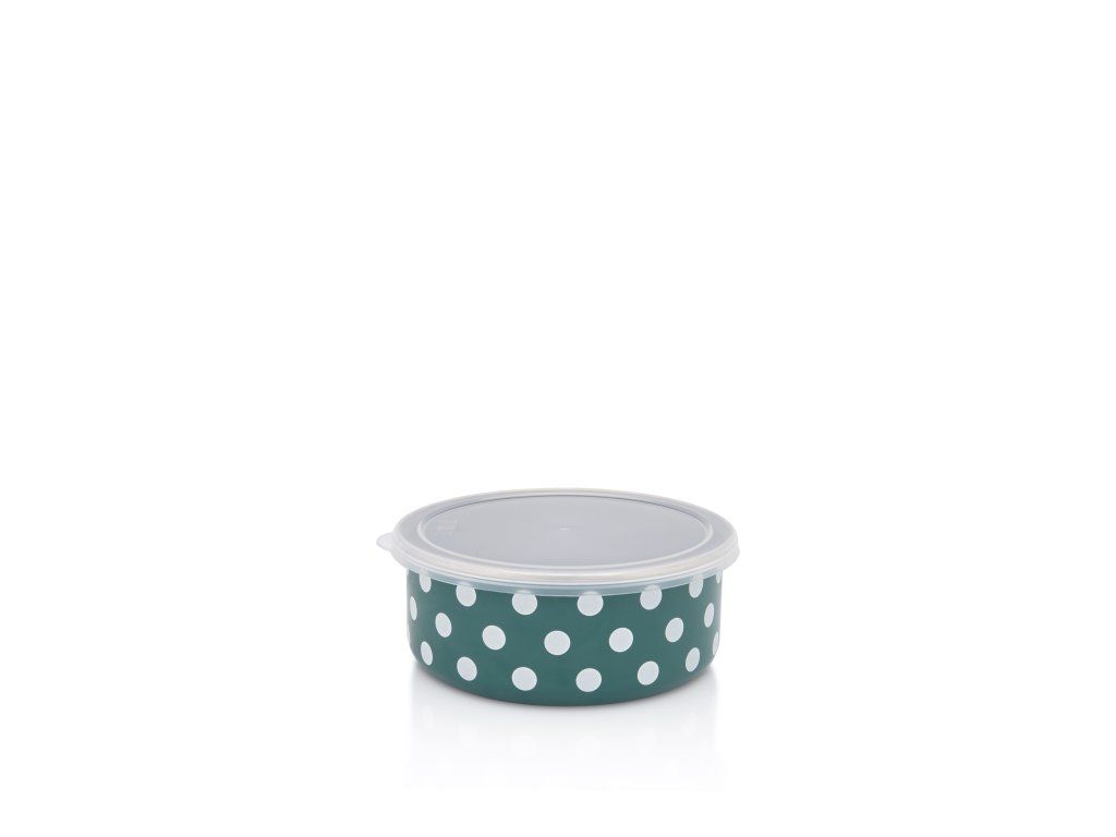 Metalac Zelený puntík, Miska s plast. víčkem 16 cm, 1,3 l, černý vnitřek
